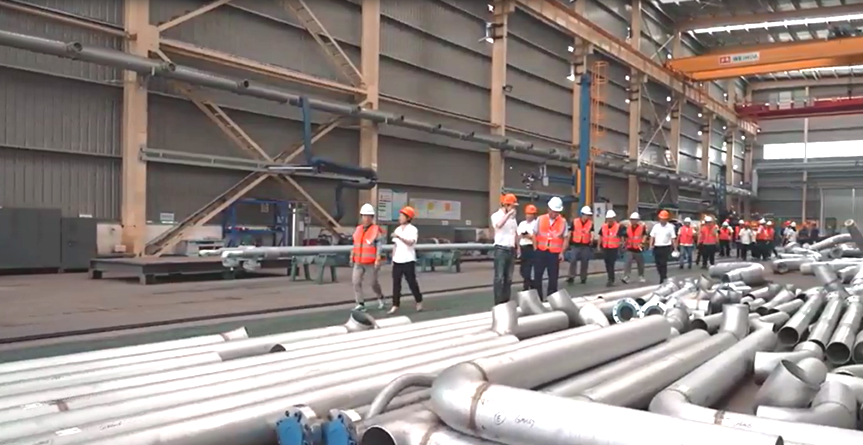 下午與會人員參觀了金童裝備公司的管道預(yù)制自動化生產(chǎn)線和二期新石化高端裝備研發(fā)和制造項目建設(shè)工地,并對中石油廣西乙烯項目在制的合金鋼預(yù)制管道進(jìn)行了材料追溯審核和質(zhì)量控制的檢查和交流。